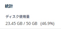 バックアップファイル削除後、再び、ディスク使用量を確認すると50%以下になりました。